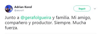 "Junto a Gerardo y familia. Mi amigo, compañero y productor. Siempre. Mucha fuerza", escribió Adrián Korol.