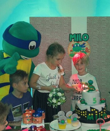 El galán compartió en su cuenta de Instagram, en la que tiene dos millones de seguidores, fotos del festejo del cumpleaños de Milo, que estuvo decorado con merchandising de Las Tortugas Ninja.