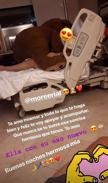"Te amo mi amor y todo lo que te haga feliz y bien te voy a apoyar y acompañar. Que nunca se te borre esa sonrisa enorme que tenés. Te amo. Ella con su oso nuevo. Buenas noches hermosa mía", escribió el novio de una famosa, junto con la foto del peluche gigante que le regaló, luego de que ella se sometiera a una intervención quirúrgica.