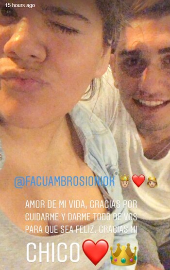 El jugador de Temperley le contestó por la misma vía y tuvieron un romántico ida y vuelta. "Hermosa, mi amor. Te amo", comentó él y ella le agradeció el mensaje: "Vos sos hermoso, amor de mi vida. Te amo con el alma".