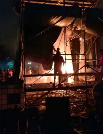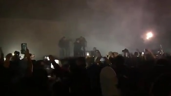 Los momentos de mayor tensión se vivieron cuando un grupo de personas se subió al escenario y comenzó a tironear de la gran tela que hacía de telón. El movimiento hizo tambalear a toda la estructura de las luces que se balanceaban peligrosamente sobre sus cabezas. El ambiente se tornó caótico y la reminiscencia a la tragedia de Cromagnon inevitable: las llamas creciendo, la nube de humo y el desconcierto del público. Pero todo quedó ahí.
