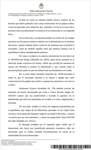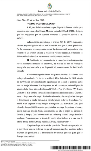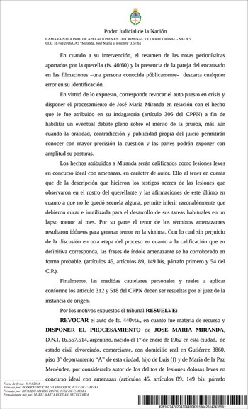 Aquí, el fallo completo de la Cámara Nacional de Apelaciones que compromete a Joe Miranda:
