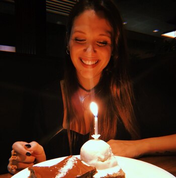 La joven modelo compartió en las redes sociales, fotos en donde se la puede ver recibiendo sus 24 en un restaurante, soplando la velita ubicada en medio de un suculento brownie con helado.