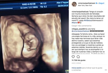 Hace unos días Vicky compartió en sus redes sociales la alegría al ver a su hijo en la primera ecografía. "Tengo mucha alegría y lo quiero compartir con ustedes. Semana 10 de embarazo y le pude ver los bracitos, las patitas y ya come por mi cordón", había escrito en su cuenta de Instagram.