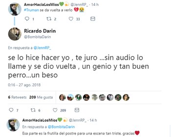 Por un lado, Darín contó detalles de la película que narra la vida de dos amigos (uno de ellos es el dueño de Truman, el perro) que se reencuentran luego de varios años."#Truman se da vuelta a verlo", destacó una televidente manifestando su sorpresa sobre una escena del actor con el can. "Se lo hice hacer yo, te juro… sin audio lo llamé y se dio vuelta, un genio y tan buen perro… un beso", aseguró.