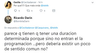 "¿¿Por qué?!?! Que mala onda @telefe", consultó una usuaria. "Parece que tienen que tener una duración determinada porque si no no entran en la programación… pero debería existir un poco de sentido común, ¿no?", analizó el actor manifestando su descontento y sugirió a otro seguidor que mirara la película completa "sin cortes y de corrido".