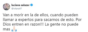 "Dios nos ampare", fue el hashtag que utilizó Luciana Salazar sobre el final de los mensajes que escribió.