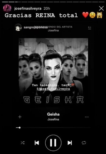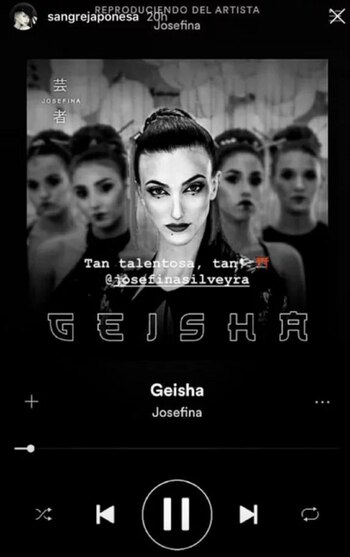 En su cuenta de Instagram la actriz mostró que estaba escuchando el nuevo tema de Josefina Silveyra, quien fue pareja del protagonista de Mi hermano es un clon durante dos años, justo antes de que él se pusiera a noviar con Laurita Fernández.
