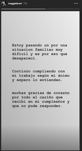 Y si bien Magui no especificó el tema en cuestión, tuvo una inmediata repercusión entre sus fans, quienes le manifestaron su apoyo ante esta complicada situación que le toca atravesar.