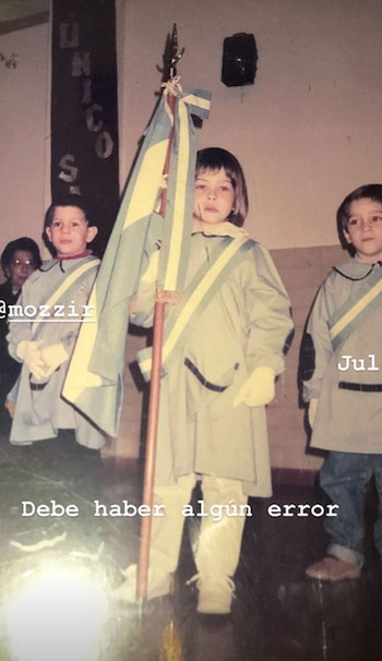 "Debe haber algún error", escribió la novia de Benjamín Vicuña junto con una imagen de ella en el jardín de infantes, como abanderada, junto con sus compañeritos, escoltas.