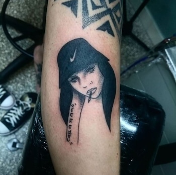 Hace un tiempo ya se había hecho un diseño en su pierna vinculado al conjunto de Boedo. En el mismo se puede ver el rostro de una mujer con un gorro, un cigarrillo y una bufanda con la leyenda "CASLA te amo".