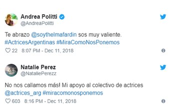 Inmediatamente, mientras se realizaba la conferencia y se conocían detalles de la denuncia, los famosos comenzaron a estallar las redes sociales bajo el hashtag #MiraComoNosPonemos y #NoNosCallamosMás, propuestos por el colectivo de actrices.