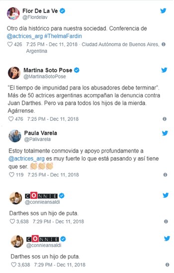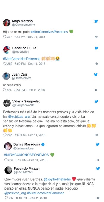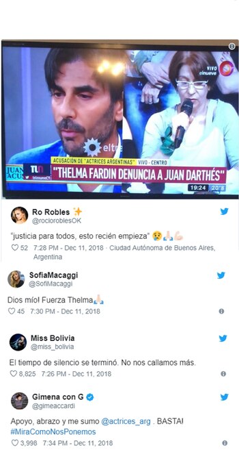 A través de diferentes mensajes, todos se solidarizaron con Thelma Fardín y repudiaron completamente al actor Juan Darthés, luego de que se conociera los detalles de la fuerte denuncia.