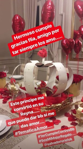 "Hermoso cumple. Gracias familia y amigos por estar siempre, los amo… Este príncipe me convirtió en su reina. Qué puedo dar, bebé, si me das amor… #PrimerCumpleConVosBb #SosMiMejorRegalo", escribió la Griega en una de las imágenes en su cuenta en Instagram.