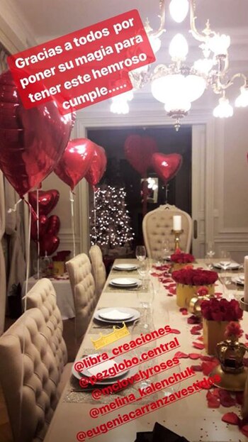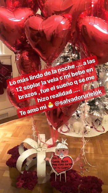 A través de su cuenta en Instagram, Vicky compartió algunas imágenes del festejo junto a sus seres queridos: el departamento estuvo decorado con globos y tortas en forma de corazones. "Porque con Salvador conocí el amor", dijo.