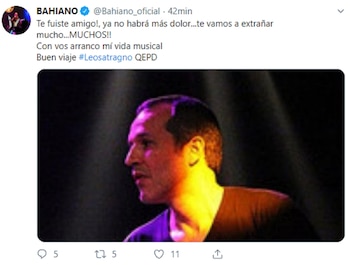 Leo había fundado en 1986 el grupo El Signo con Fernando Hortal, más conocido como el Bahiano. Y luego se sumó Gastón Satragno (49), su hermano menor. El ex cantante de Los Pericos fue uno de los primeros en anunciar la información en su cuenta personal de Twitter. "Te fuiste amigo, ya no habrá más dolor… Te vamos a extrañar mucho… Muchos!!!. Con vos arrancó mi vida musical. Buen viaje Leo Satragno. QEPD", escribió.