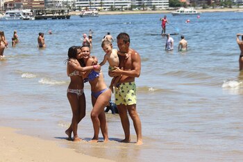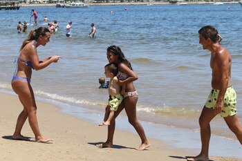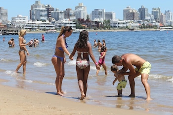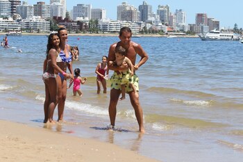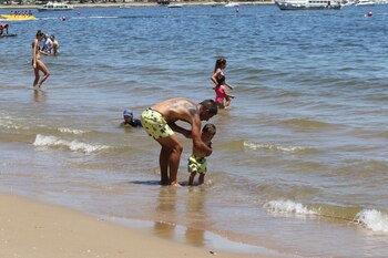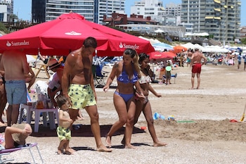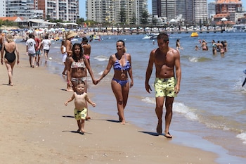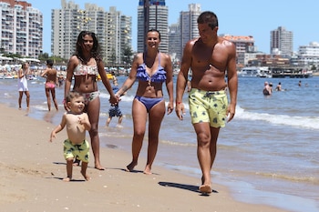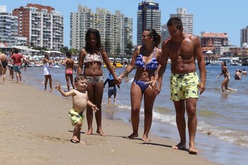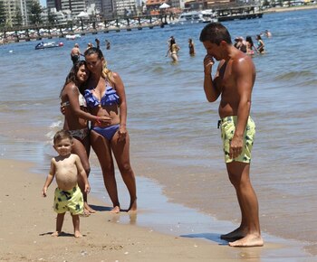 Tal como se puede ver en las imágenes tomadas en la Playa Mansa, aprovechan cada minuto de su estadía y se divierten, juntos, en familia.