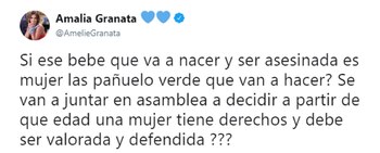 "Si ese bebe que va a nacer y ser asesinada es mujer las pañuelo verde ¿qué van a hacer? ¿Se van a juntar en asamblea a decidir a partir de qué edad una mujer tiene derechos y debe ser valorada y defendida?", agregó la periodista.