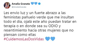 Nancy Pazos –que en febrero de 2018 contó que interrumpió un embarazo cuando tenía 18 años– fue una de las primeras usuarias en salir a responderle a Granata. "Tu ceguera es tal que de la nena de 12 años violada no decís nada. Y tampoco te importa saber que puede morir en el parto. Cínica. Frívola. Si fuera tu hija la violada y a la que le pronostican que puede morir, ¿qué harías? ¿Rezarle a la Virgen?", cuestionó la actual panelista de Bendita.