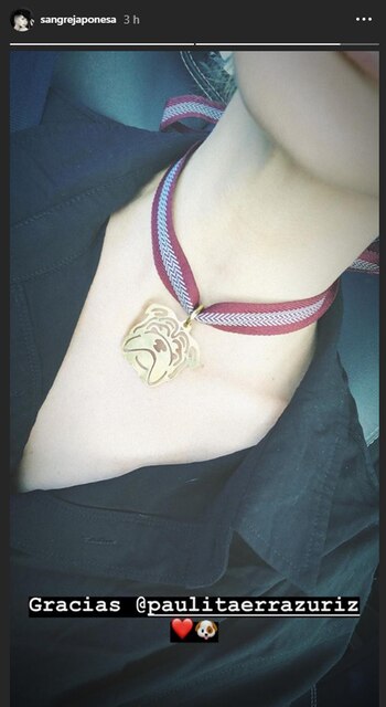Días atrás hizo pública la muerte de su mascota a través de unas sentidas palabras en su cuenta de Instagram. Sin embargo, acaso sintiendo que no era suficiente homenaje para su amada perra Bandida, Eugenia la China Suárez decidió rendirle tributo replicando la cara de su bulldog inglés en una medallita que ahora cuelga de su cuello.