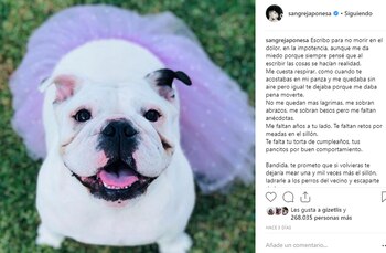 "Bandida, te prometo que si volvieras te dejaría mear una y mil veces más el sillón, ladrarle a los perros del vecino y escaparte de la casa. Cuántos abrazos me quedaron por darte. Cuántas apretadas de cachetes", expresó conmovida por la pérdida.