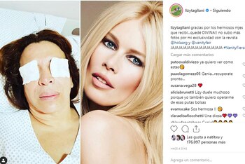 Se sabe que Lizy Tagliani suele tomarse con humor prácticamente todo lo que le pasa en la vida, y la cirugía que se realizó para sacarse las bolsas de los ojos no podía ser la excepción.