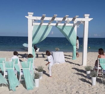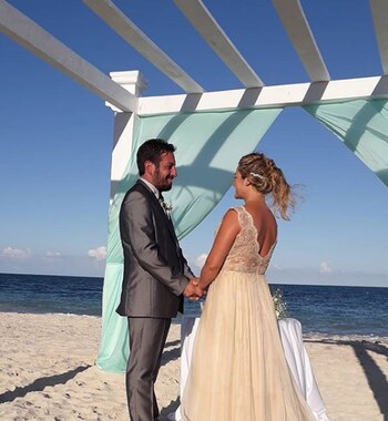 Luego de la boda por Civil y por Iglesia que la pareja realizó en Buenos Aires, decidieron invitar a toda la familia, unas catorce personas en total, a seguir celebrando. Además de disftrutar del sol, la arena y de una cena, hubo una ceremonia en la que la pareja simuló un casamiento en la playa.