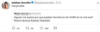 Otro seguidor se preguntó por qué era "tan nabo en la vida real" y que "debería llamarse Naboletti" y el actor dijo que era algo "inexplicable".