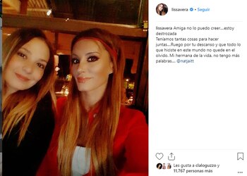 Tras escuchar estas palabras, Lissa Vera utilizó su cuenta en Instagram para publicar una foto junto a Natacha y dejar un mensaje: "Natacha era mi hermana mi confidente, estoy devastada con la noticia. Mi hija la adora, no encontramos consuelo en nada!".