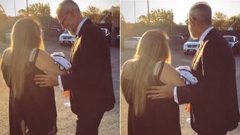 Las imágenes fueron tomadas mientras ellos y el resto de los invitados aguardaban por la llegada de la novia, Romina Pereiro, que lució un vestido blanco con mangas largas.