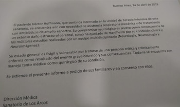 Luego sigue: "Su compromiso neurológico es severo como consecuencia de un daño estructural cerebral, como ha quedado de manifiesto por su condición clínica y los múltiples estudios realizados por el equipo".