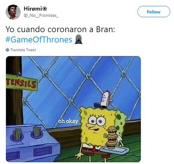En la mayoría de los memes que se publicaron con el hashtag #GameofThronesFinale y #GameOfThrones se puede apreciar la decepción por el sorpresivo protagonismo que tuvo Bran Stark al ser coronado como el nuevo rey.