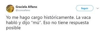 "Yo me hago cargo históricamente. La vaca habló y dijo 'mú'. Eso no tiene respuesta posible", concluyó.