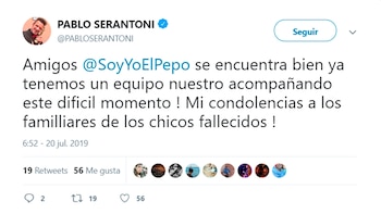 Luego de esta tragedia, Pablo Serantoni, productor de El Pepo y del programa Pasión de Sábado, escribió un mensaje en su cuenta oficial de Twitter: "Amigos @SoyYoElPepo se encuentra bien ya tenemos un equipo nuestro acompañando este difícil momento. Mi condolencias a los familiares de los chicos fallecidos".