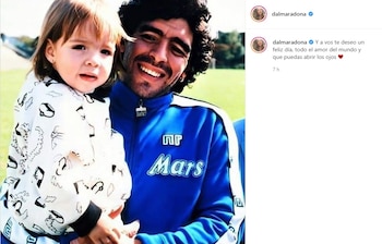 Otro del clan Maradona que se manifestó en las redes fue Diego Maradona Junior. “Feliz día Pá”, escribió el joven que hace unos días recordó cómo fue el momento en el que se reencontró con su padre en Argentina, hace unos cuatro años, el arranque de una relación que hasta hoy los mantiene unidos.