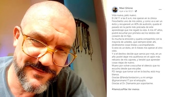“Es mucha la emoción y quería compartirla con la mayoría de ustedes, que siempre están ahí, diciéndome cosas lindas y acompañando. Si esto es un éxito, en seis meses me operan el otro oído. Y si el destino decide que vamos por más, en un año podré dejar mis audifonos en el cajón más relicario de mis cajones, y tendré que aprender cosas viejas de nuevo”, contó.