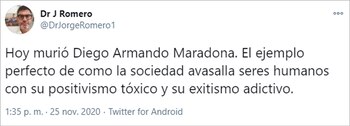 Con la misma lucidez con la que atendió a Diego Maradona cuando todo era incertidumbre y desconcierto, Jorge Romero se hizo eco en su cuenta de Twitter sobre la partida de El 10 con una reflexión muy sentida.