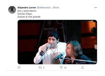 A medida que la noticia se viralizó, cada vez más figuras opinaron sobre el fallecimiento del director técnico. El cantante español Joaquín Sabina publicó: “¿Maradona? Maradona cantó conmigo y con mi bombín, cantó de arriba abajo ‘Y nos dieron las diez’, en el Teatro Gran Rex… Y la cantó él, no me dejó cantar nada... Descanse en paz, Diego Armando Maradona”. Su colega Alejandro Lerner señaló: “Sos y serás eterno. Gracias Diego. Gracias al más grande”.