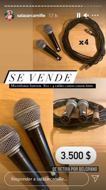 De esta manera, la psicóloga e influencer ofertó a sus cientos de seguidores micrófonos, discos y diversos electrodomésticos, desde un rizador de pelo, una tele, hasta un panel acústico para grabar podcast. A medida que los lograba vender, ponía un cartel para avisar que ya no estaba disponible.