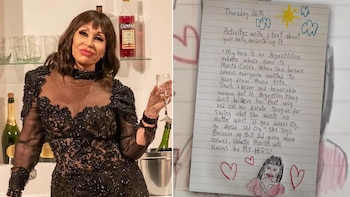 Y cierra: “Por esto y por muchas otras cosas más, la vedette Moria será siempre mi héroe”. La carta, escrita en inglés y en imprenta, está acompañada de un dibujo de un sol con nubes, corazones y de Casán, vestida con una remera roja, los labios rojos y su pelo largo con flequillo.