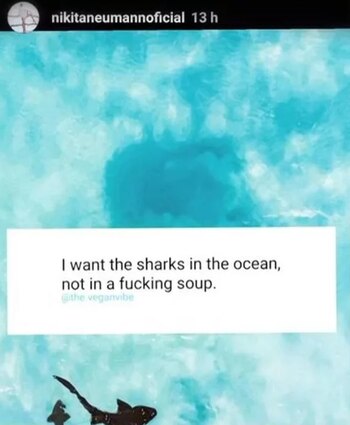 "Hubo un posteo de tu ex marido, Fabián, con unos tiburones", le preguntó el cronista de Intrusos a la top model, quien luego de la publicación de su ex subió una en la que también aparecían tiburones. "I want the sharks in the ocean, not in a fucking soup" (Yo quiero los tiburones en el océano, no en una maldita sopa), escribió junto a la imagen.