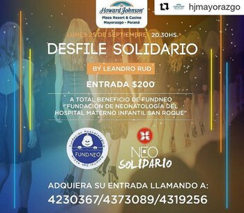 En Paraná, Entre Ríos, las principales acciones que Leandro Rud impulsó con famosos para conseguir equipamiento y dotar a las salas de todo lo necesario fueron a través de desfiles benéficos, tres al año . Con esa plata se pudieron comprar tomógrafos y remodelar distintas áreas del hospital.