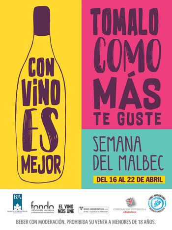 En el marco de la octava edición y bajo el concepto "con vino es mejor, tomalo como más te guste", (campaña creada por Bodegas de Argentina), se llevará a cabo por tercer año consecutivo "La Semana del Malbec", del 16 al 22 de abril en Buenos Aires. Varias bodegas ofrecerán diversas actividades, menús especiales con Malbec, descuentos y beneficios en vinotecas, restaurantes y bares en distintos puntos de la ciudad.