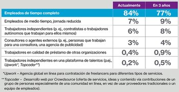 Si bien las organizaciones esperan reducir el porcentaje de empleados de tiempo completo, también prevén usar más trabajadores eventuales.