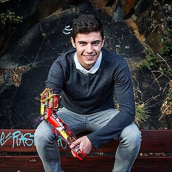 Fue a sus 10 años que el joven oriundo de Andorra, quien a modo de juego elaboró su propia prótesis de brazo articulado con piezas de un kit de Lego para armar un helicóptero. Sin embargo, en vez de armar una hélice imaginó que los bloques ayudarían a extender su brazo y desde entonces buscó a través del juego elaborar una especie de prótesis que cubriera todo su brazo.