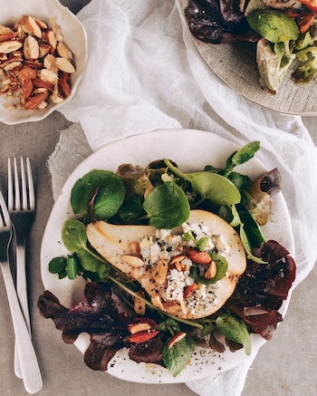 Ensalada de peras con gorgonzola y almendras