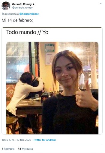 Muchas parejas en la actualidad deciden celebrar con salidas especiales y regalos, mientras que otros tildan la fecha de comercial y prefieren quedar al margen. Lo cierto es que las redes sociales parecen inundarse de personas que buscan encontrarle el lado divertido a este día, y despliegan toda su creatividad para crear los mejores memes.