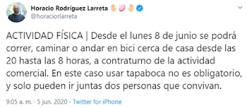 De hecho, para el infectólogo, que se permita salir a correr debería haberse autorizado hace un tiempo: “Se tendría que haber permitido desde un principio, ya que el beneficio de realizar actividad física en un contexto de encierro es muy importante, siempre teniendo en cuenta que no hay que descuidar las medidas, por eso es importante hacerlo de forma individual y evitar la acumulación de grupos de personas”.