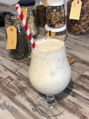 - Podés utilizar yogur o leche, preferentemente descremados, y si querés hacer la versión veggie podes usar bebida de almendras