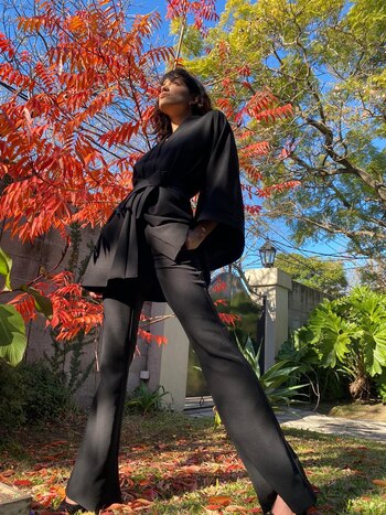 “Diseñé estas prendas pensando en las mujeres fuertes y activas, que les gusta verse bien todos los días en la situación actual en donde estamos en casa con nuestro hijos, quizás haciendo actividad física, teniendo que salir a la calle y presentándonos en reuniones por plataformas virtuales para seguir atendiendo nuestras tareas laborales”, detalló la diseñadora sobre su colección de kimonos.